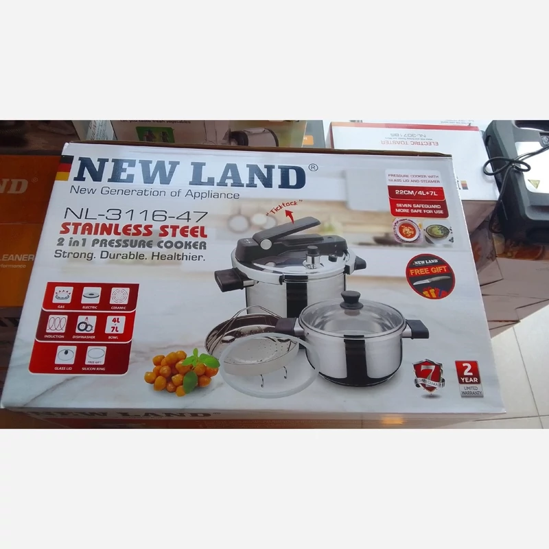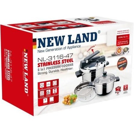 زودپز کلیپسی نیولند مدل NL-3116-47 یک زودپز استیل دوکاره با طراحی ایمن و ظرفیت مناسب است که برای پخت سریع و سالم غذاهای سنتی و روزمره کاربرد دارد. این مدل فعلاً در بازار موجود نیست، اما مشخصات آن در سایت ترب قابل مشاهده است.