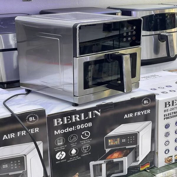سرخکن بدون روغن برلین مدل 960B یک هواپز رژیمی با ظرفیت ۸ لیتر، توان ۱۸۰۰ وات و طراحی تمام استیل است که برای پخت سالم و سریع انواع غذا مناسب خانوادههای متوسط تا پرجمعیت طراحی شده است.
