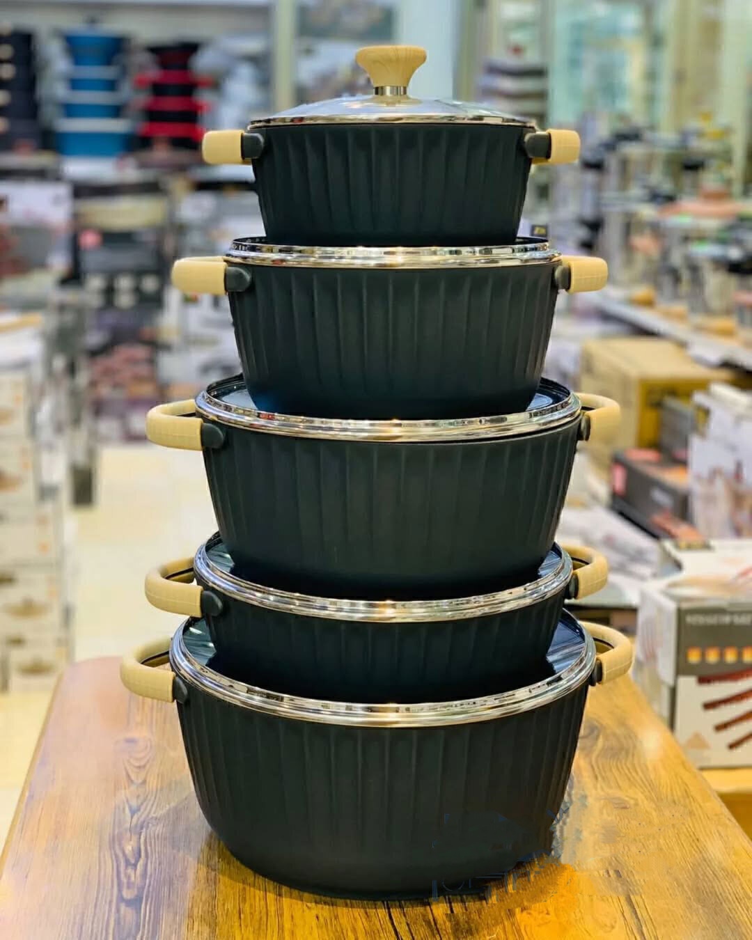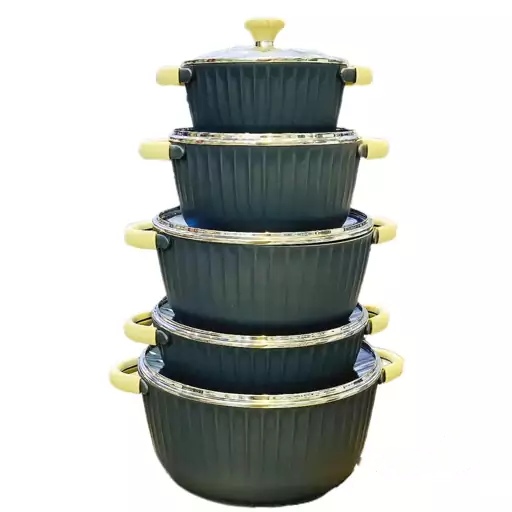 - تعداد پارچهها: ۱۰ عدد شامل قابلمهها در سایزهای مختلف، تابه و دربهای پیرکس