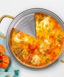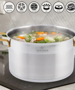 قابلمههای این ست از جنس استیل ضدزنگ با کیفیت بالا ساخته شدهاند که علاوه بر مقاومت در برابر حرارت و ضربه، طول عمر زیادی دارند. طراحی چندلایه کف قابلمه باعث میشود گرما بهطور یکنواخت پخش شود و غذا با کیفیت بهتر و سریعتر پخته شود.