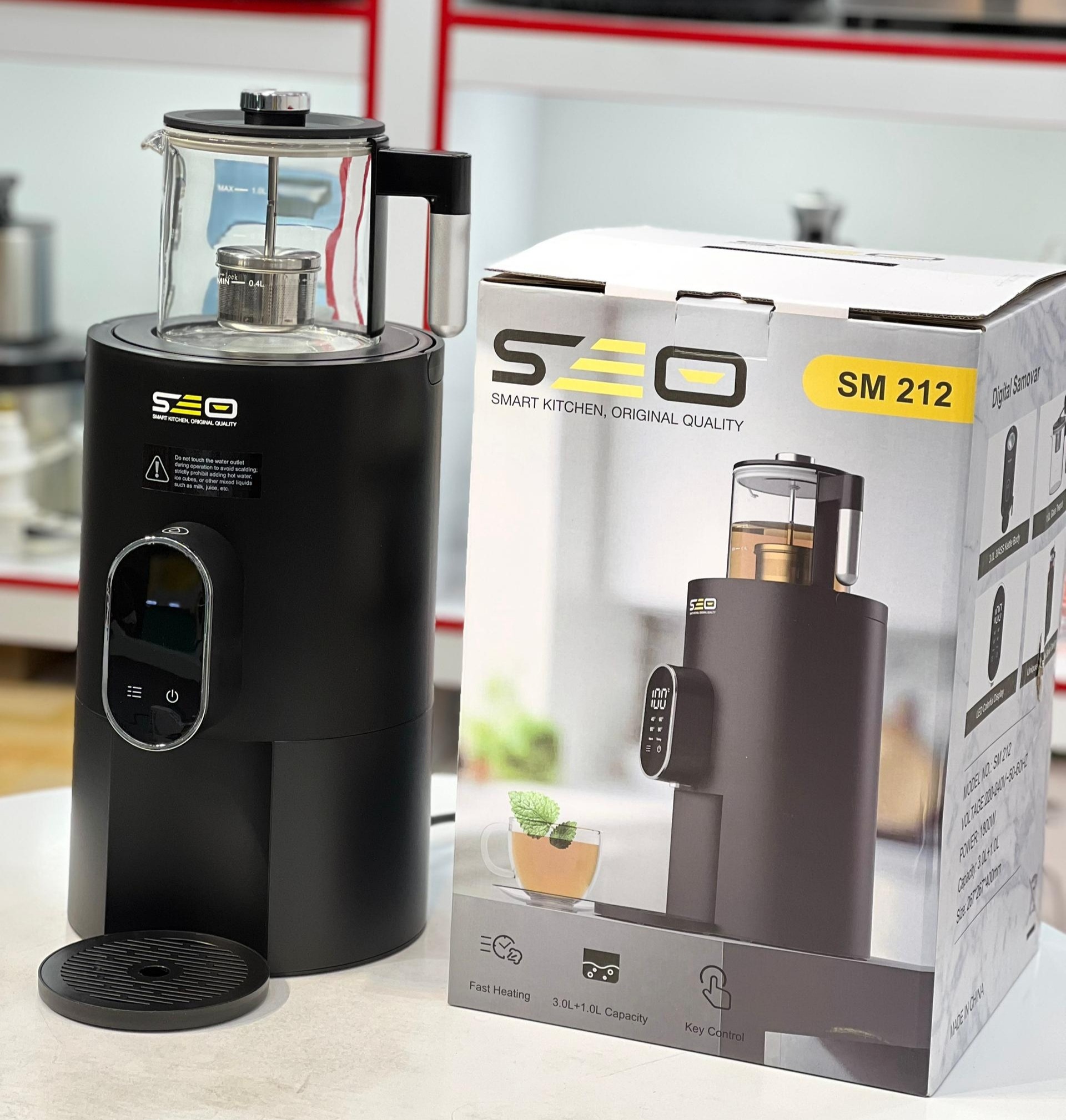اگر دنبال یه سماور لوکس، سریع، کم مصرف، ایمن و تمام لمسی هستی که هم ظاهر آشپزخونه رو شیک کنه و هم سالها بدون دردسر کار کنه، سماور برقی سئو SEO مدل SM212 دقیقاً همون چیزیه که باید انتخاب کنی.