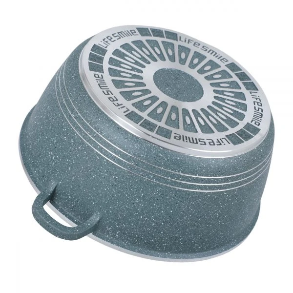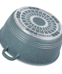 این قابلمه از جنس آلومینیوم فشرده با روکش گرانیتی نچسب ساخته شده است که علاوه بر مقاومت بالا در برابر حرارت، طول عمر زیادی دارد. پوشش داخلی گرانیتی باعث میشود غذا به سطح قابلمه نچسبد و شستوشو بسیار آسان باشد. همچنین طراحی دستههای مقاوم و ارگونومیک، استفاده طولانیمدت را راحتتر کرده و ایمنی بیشتری هنگام جابهجایی فراهم میکند.