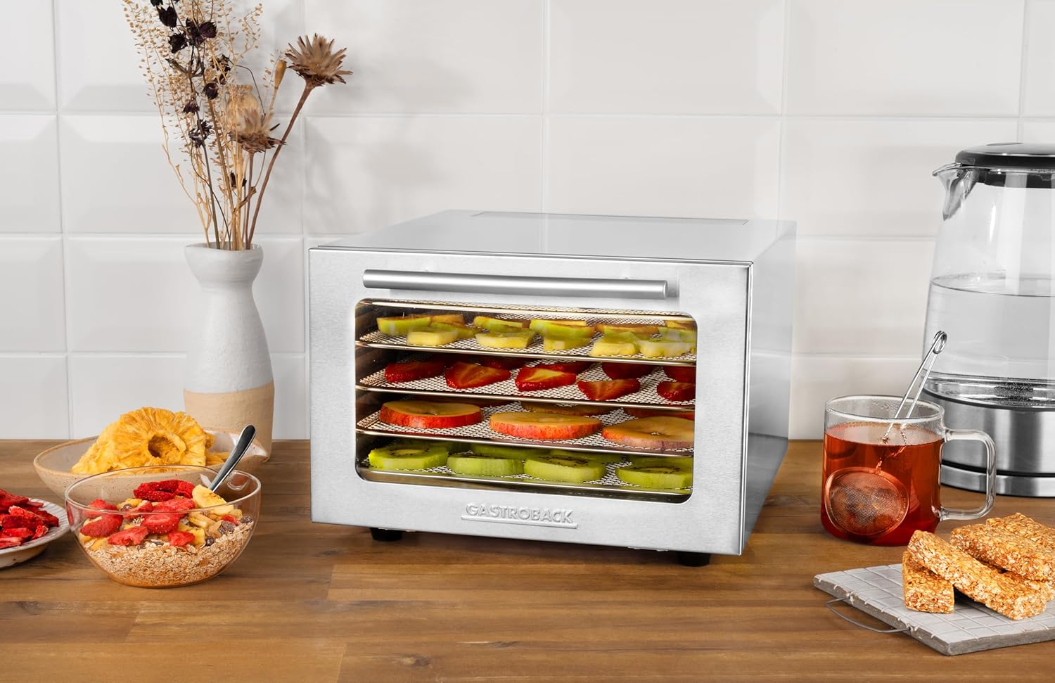 خشککن میوه گاستروبک مدل 46604 یک دستگاه خانگی حرفهای با توان 400 وات و بدنه استیل ضدزنگ است که برای خشککردن میوهها و سبزیجات با کیفیت بالا طراحی شده است.